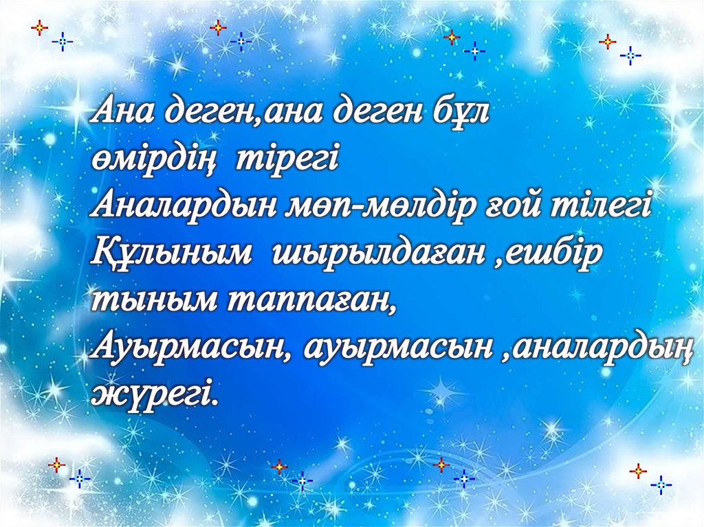 Әр адам жарық дүниеге келгенде мейірімді,жүрегі жылы жанды көреді. Ол - Ана.