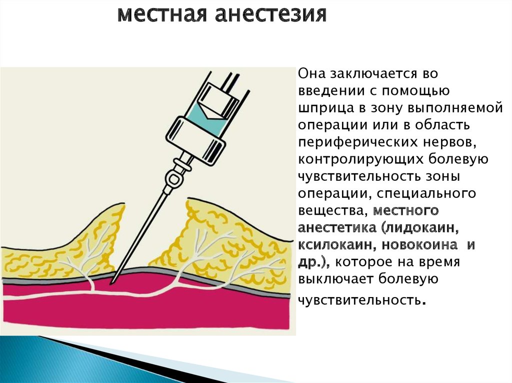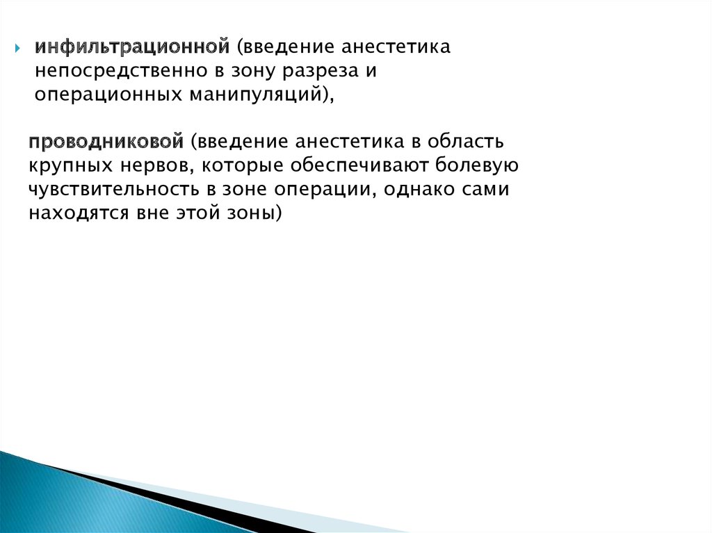 инфильтрационной (введение анестетиканепосредственно в зону разреза и