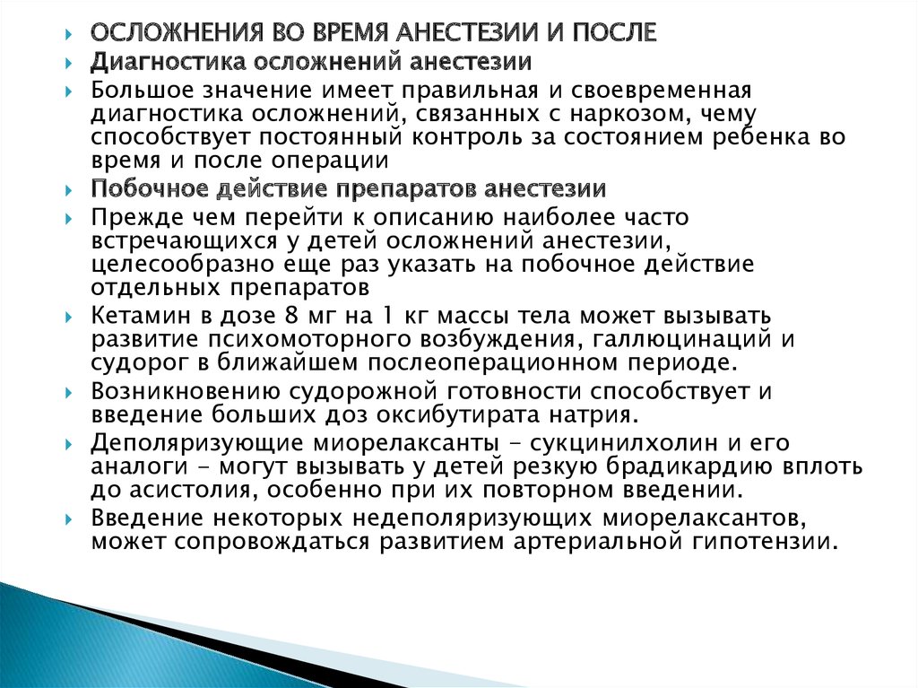 Осложнения во время анестезии и послеОсложнения анестезии у детей со стороны органов
