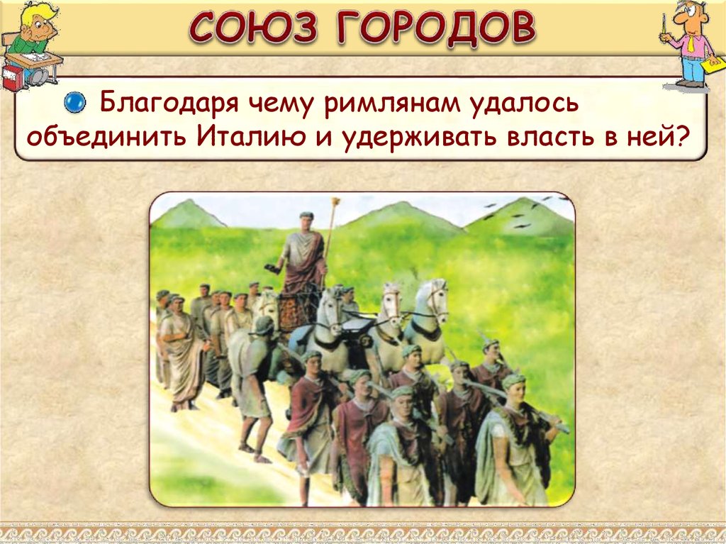 Благодаря чему римлянам удалосьобъединить Италию и удерживать власть в ней?