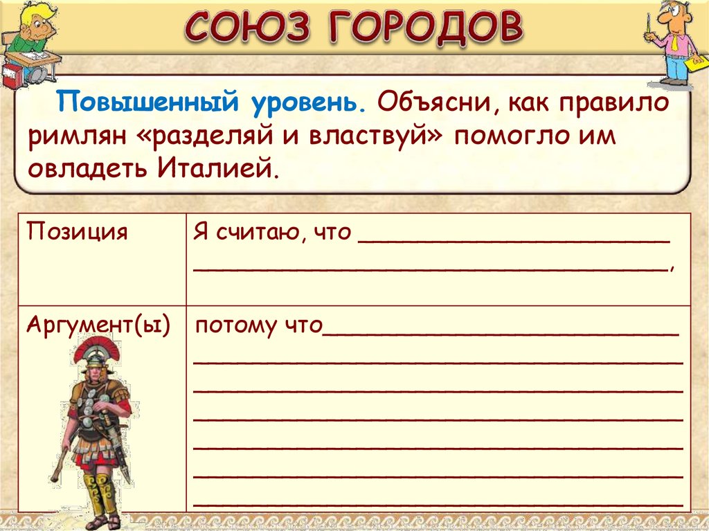 Повышенный уровень. Объясни, как правилоримлян «разделяй и властвуй» помогло им