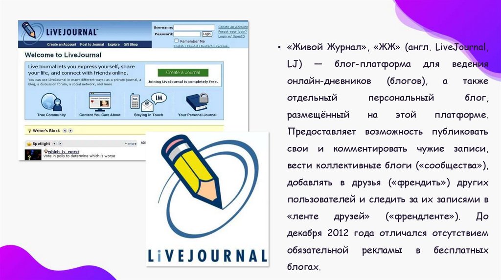 • «Живой Журнал», «ЖЖ» (англ. LiveJournal,LJ)