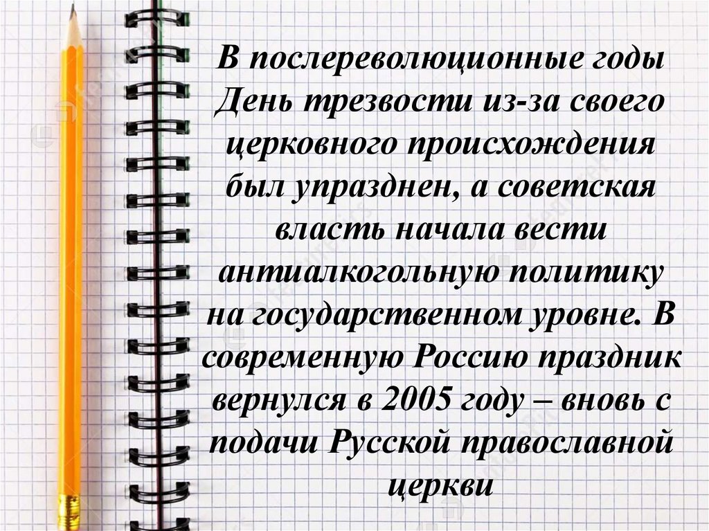 В послереволюционные годыДень трезвости из-за своего