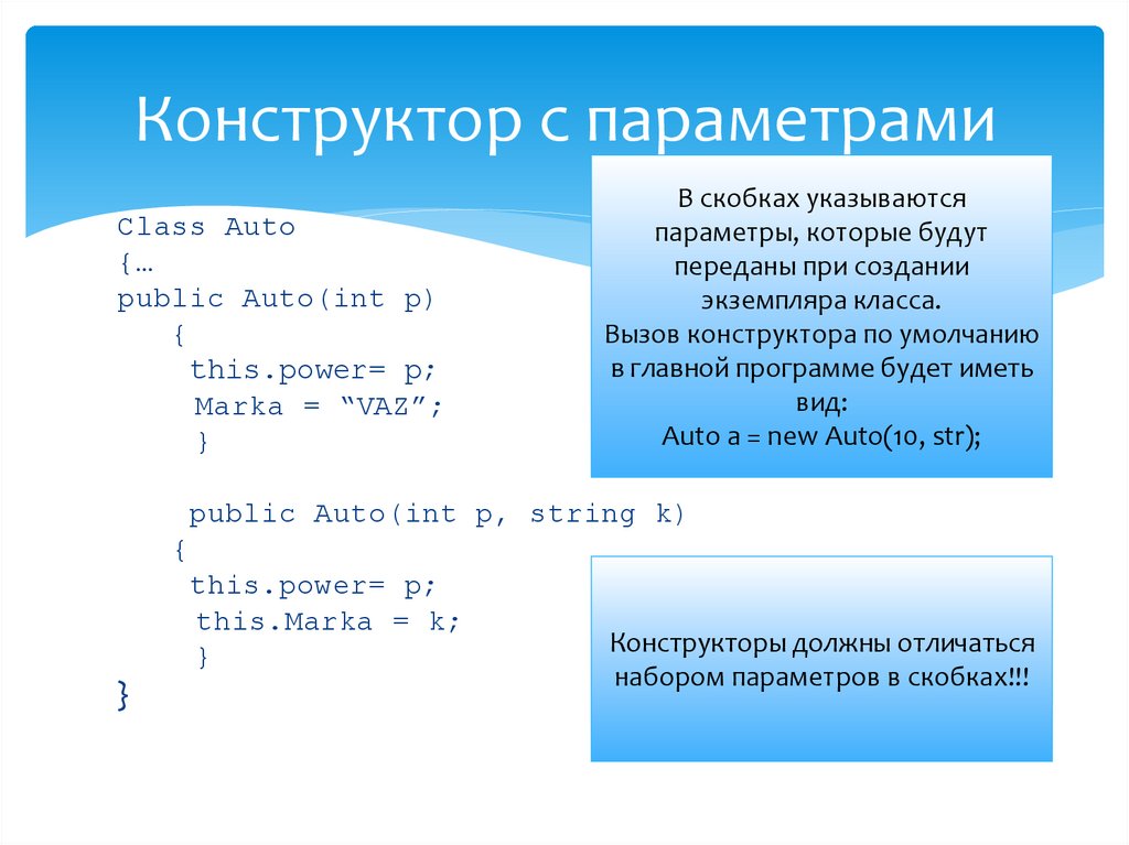 Конструктор с параметрамиClass Auto