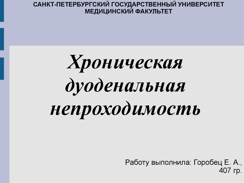 Хроническая дуоденальная непроходимость – этоклинический симптомокомплекс, обусловленный
