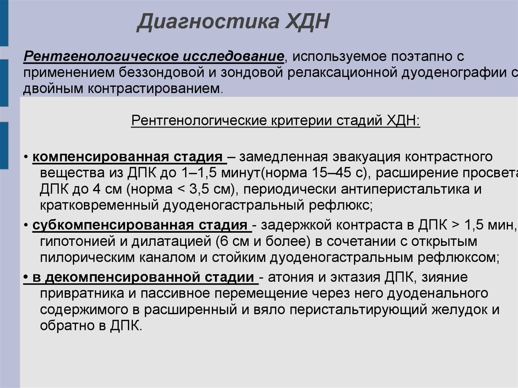 Диагностика ХДНРентгенологическое исследование, используемое поэтапно с