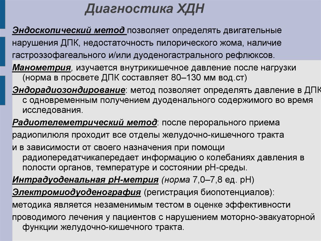 Диагностика ХДНЭндоскопический метод позволяет определять двигательные