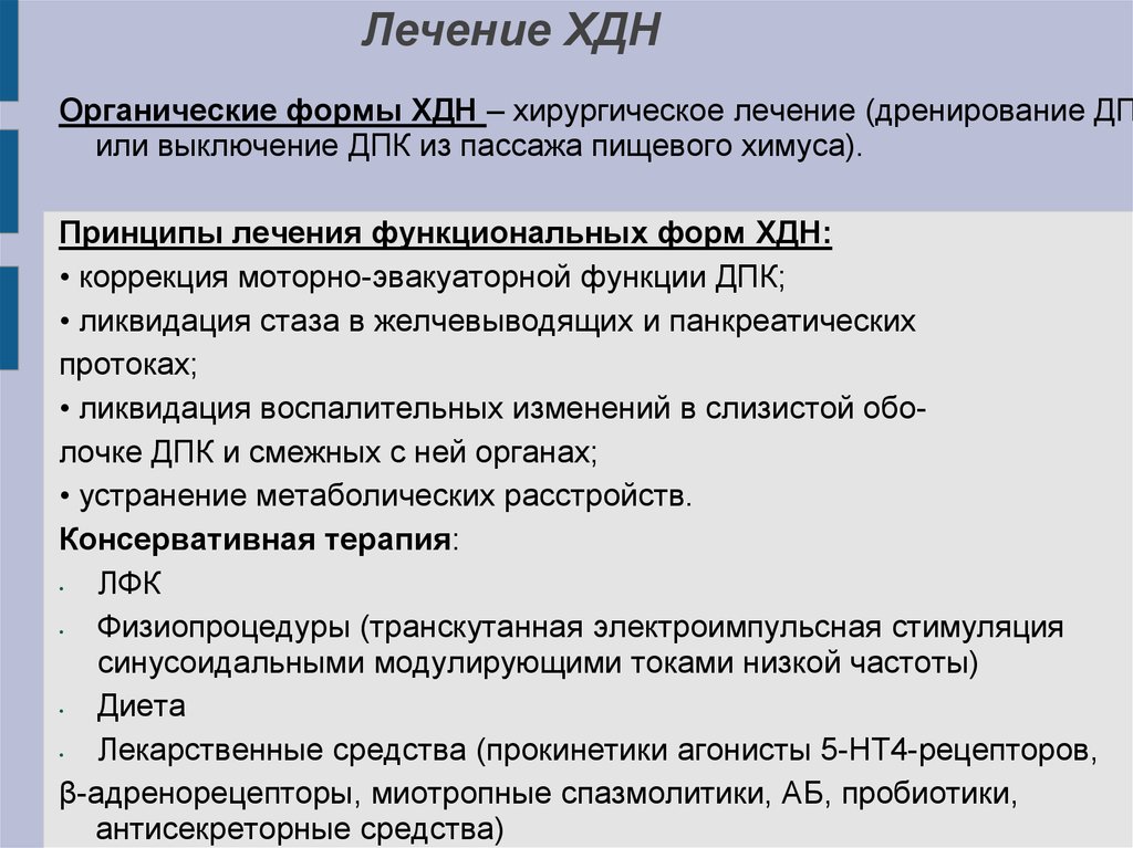 Лечение ХДНОрганические формы ХДН – хирургическое лечение (дренирование ДП