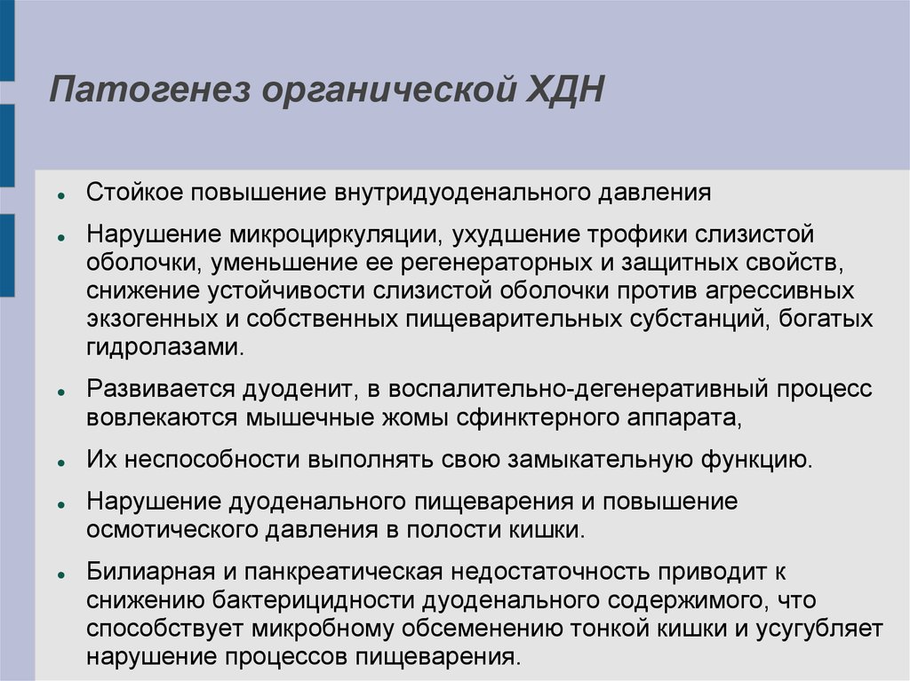 Патогенез органической ХДНСтойкое повышение внутридуоденального давления