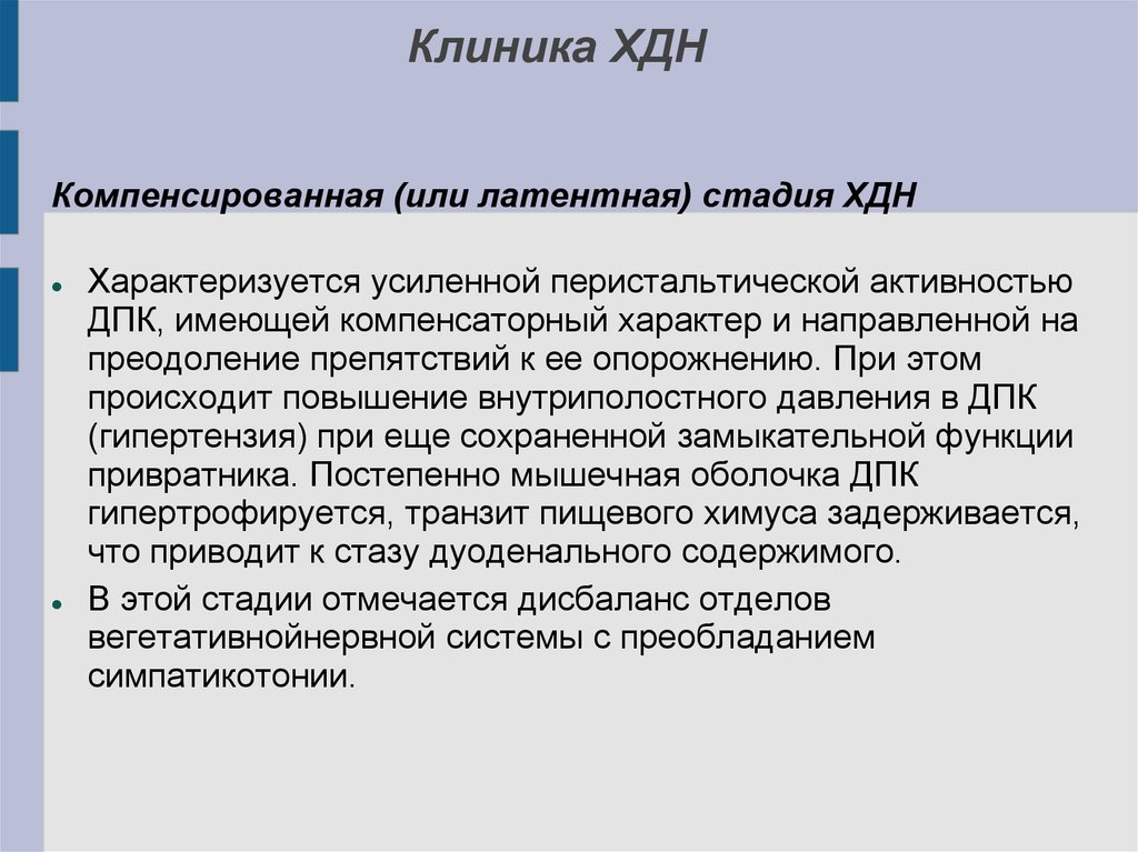 Клиника ХДНКомпенсированная (или латентная) стадия ХДН