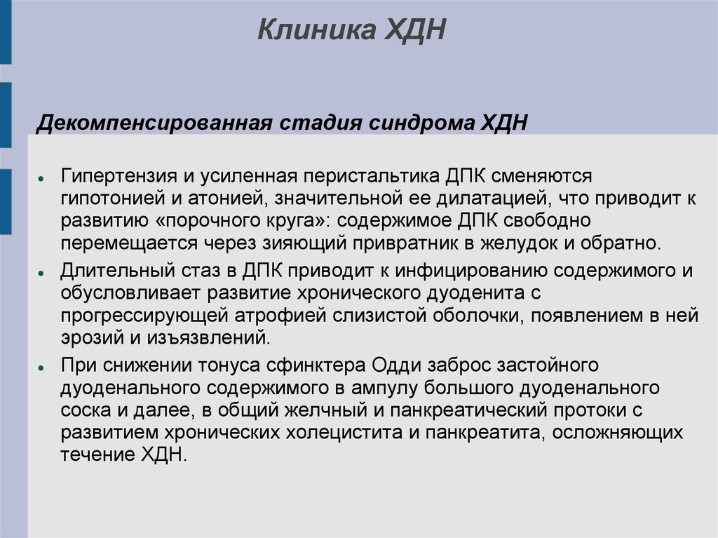 Причины органической ХДН3. Интрамуральные патологические процессы в стенке ДПК: