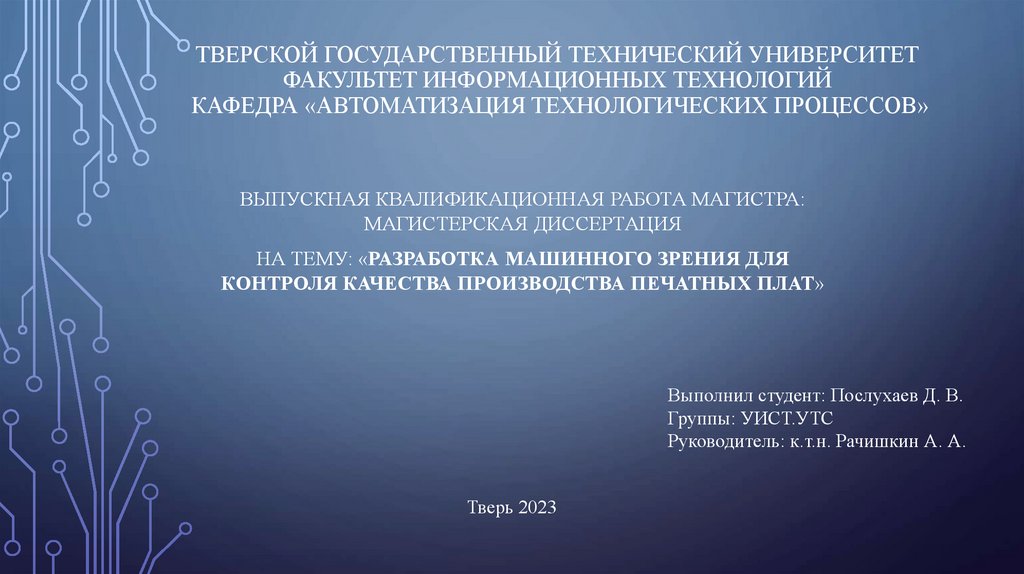 Разработка машинного зрения для контроля качества производства печатных плат