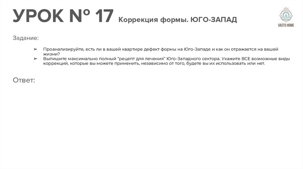 Модуль 2. Урок 13: Правила Васту-коррекций