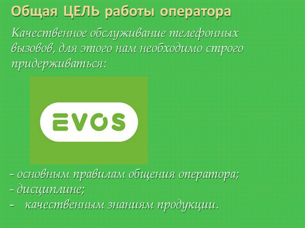 Правила общенияПриветствие: «ЭВОС». [Имя] оператора