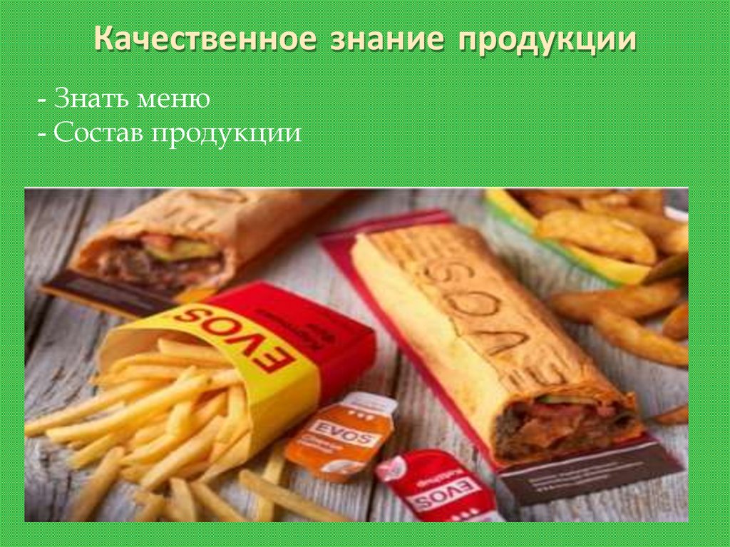 Качественное знание продукции- Знать меню