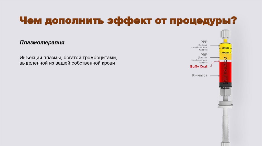 Чем дополнить эффект от процедуры?Плазмотерапия