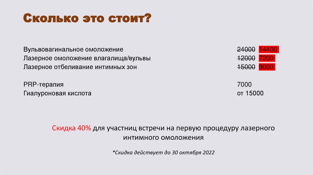 Скидка 40% для участниц встречи на первую процедуру лазерного