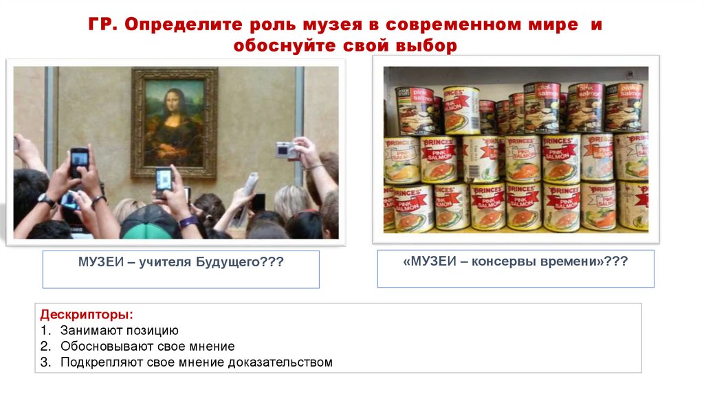 ГР. Определите роль музея в современном мире иобоснуйте свой выбор