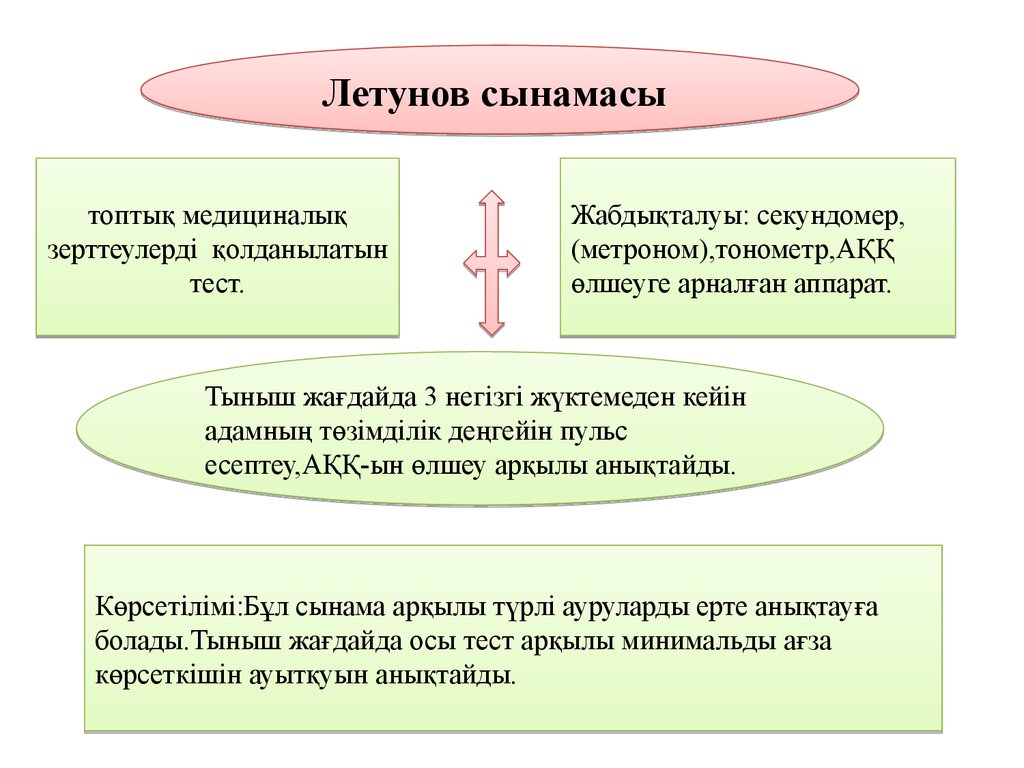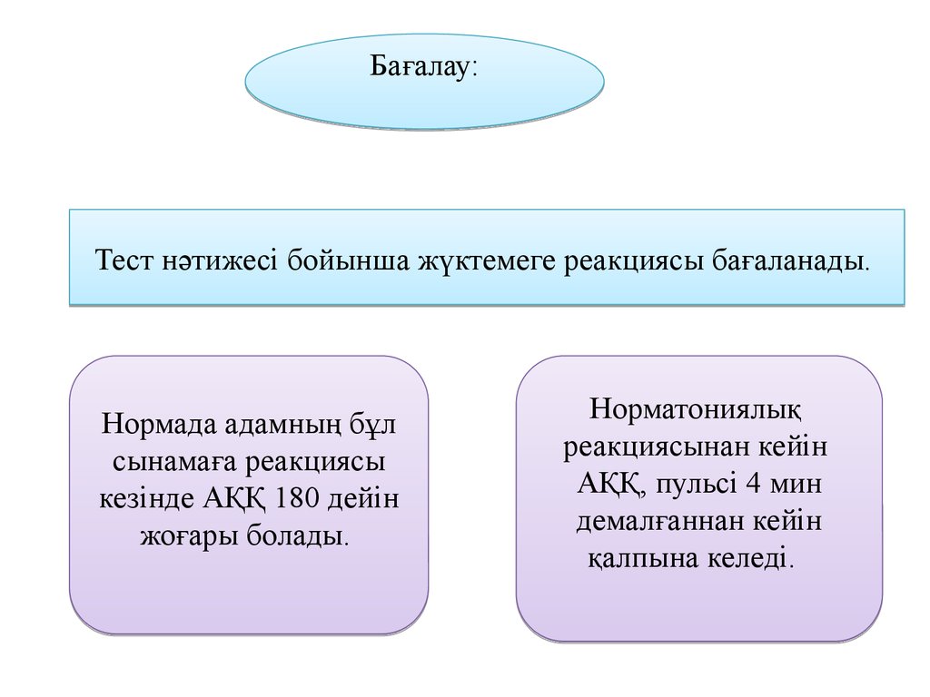 Бағалау:Тест нәтижесі бойынша жүктемеге реакциясы бағаланады.