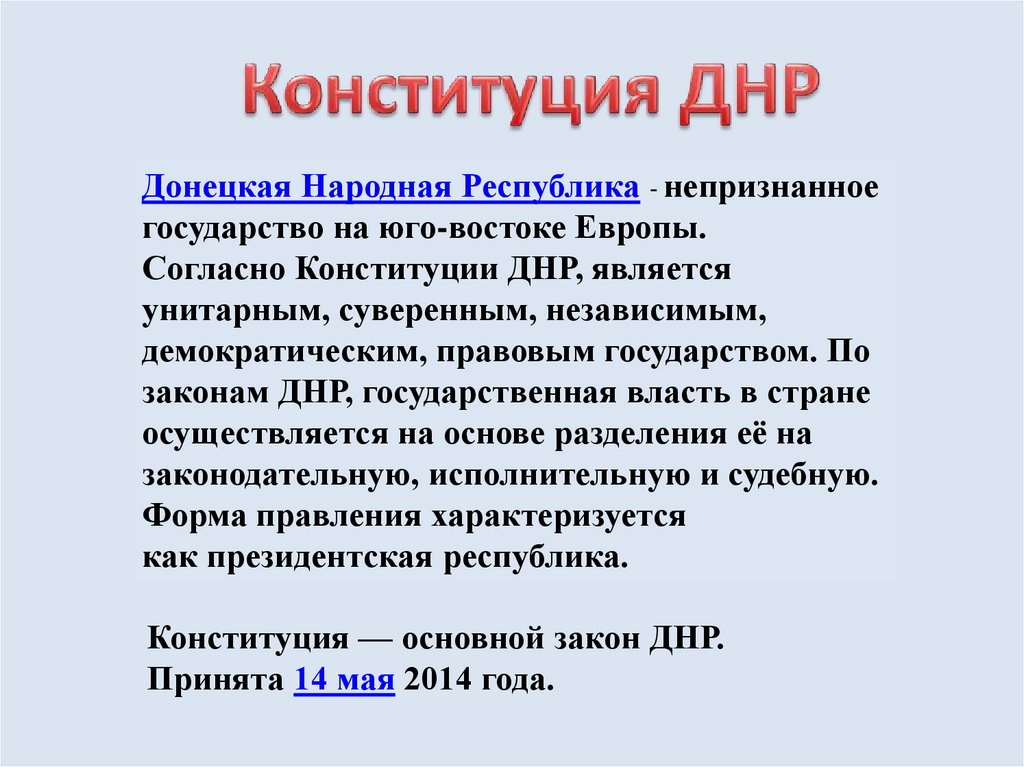 Конституция — основной закон ДНР.