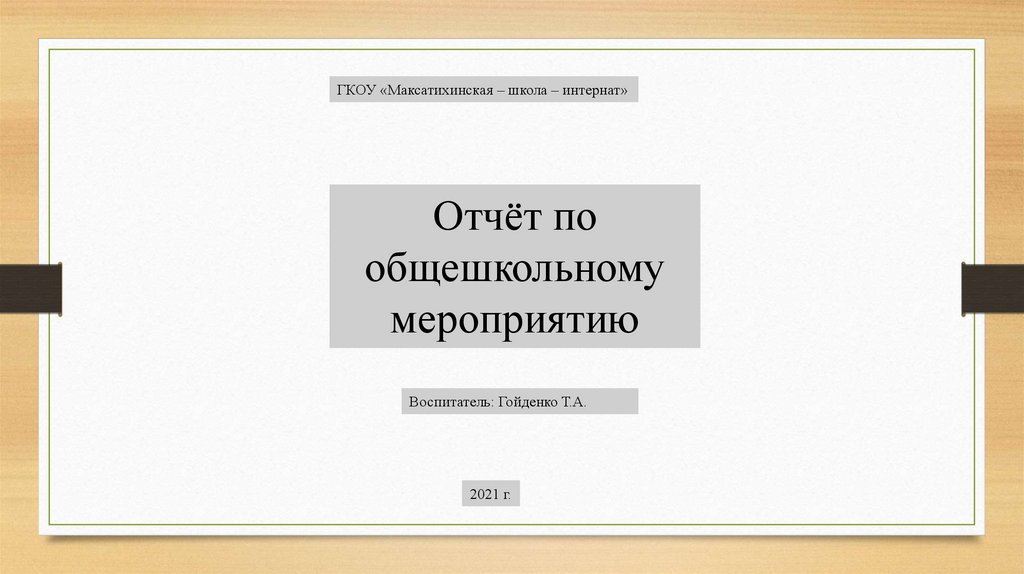 ГКОУ «Максатихинская – школа – интернат»Отчёт по