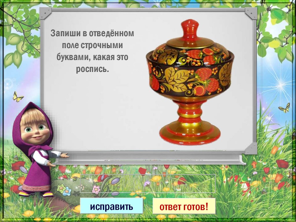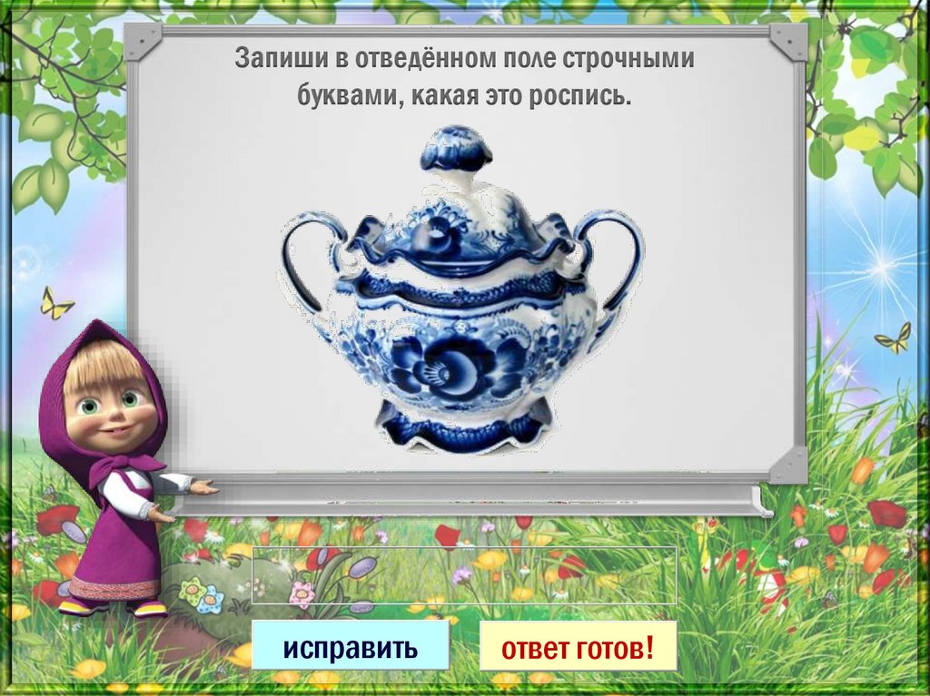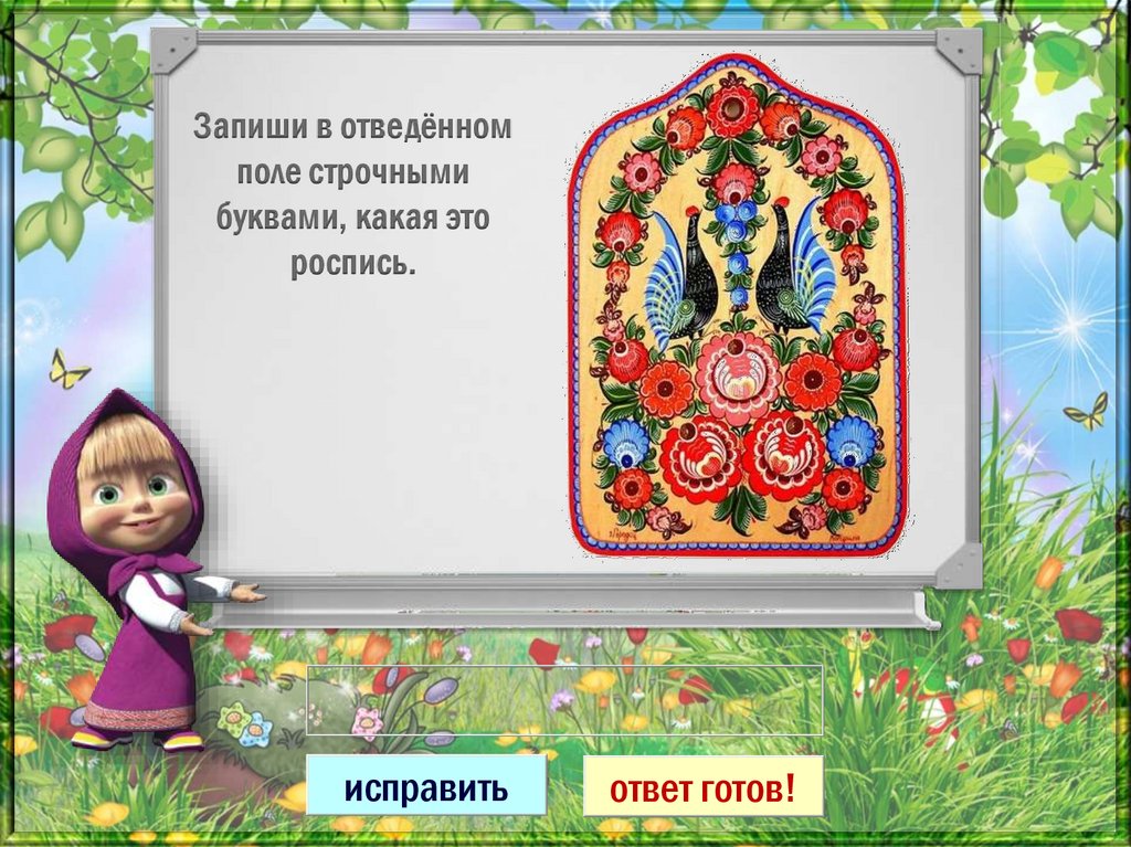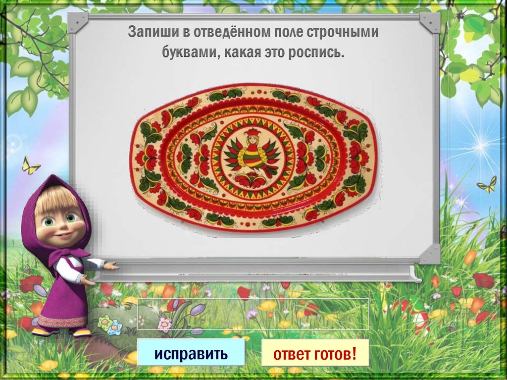 Запиши в отведённом поле строчнымибуквами, какая это роспись.
