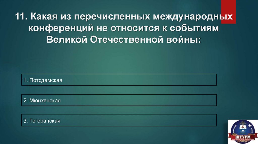 11. Какая из перечисленных международныхконференций не относится к событиям