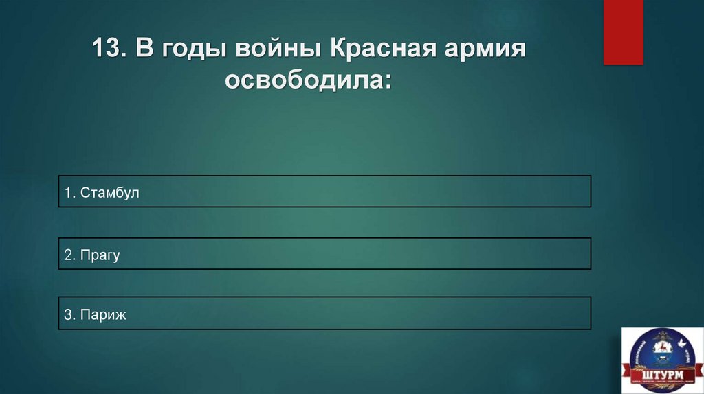 13. В годы войны Красная армияосвободила:
