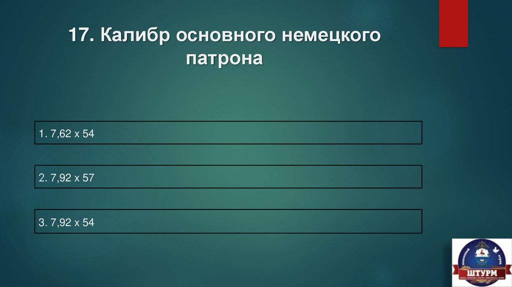 17. Калибр основного немецкогопатрона