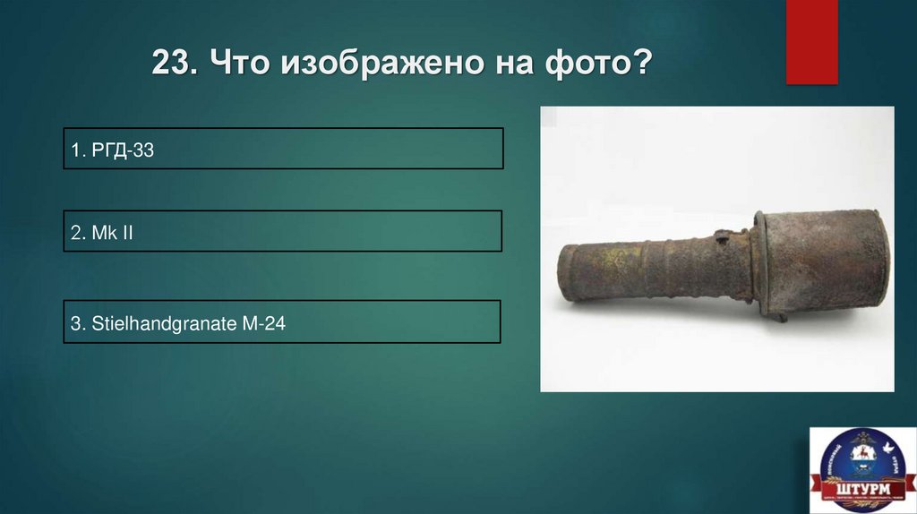 23. Что изображено на фото?1. РГД-33