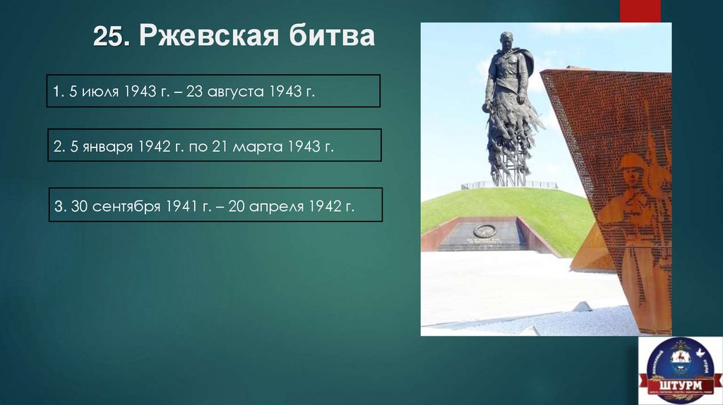 25. Ржевская битва1. 5 июля 1943 г. – 23 августа 1943 г.