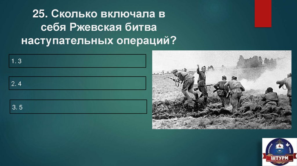 25. Сколько включала всебя Ржевская битва