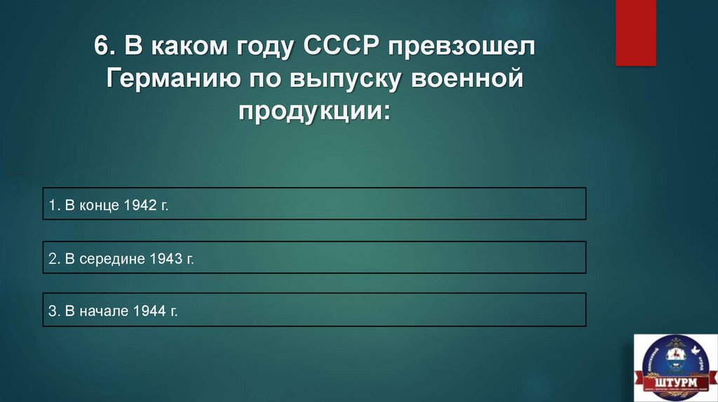 6. В каком году СССР превзошелГерманию по выпуску военной