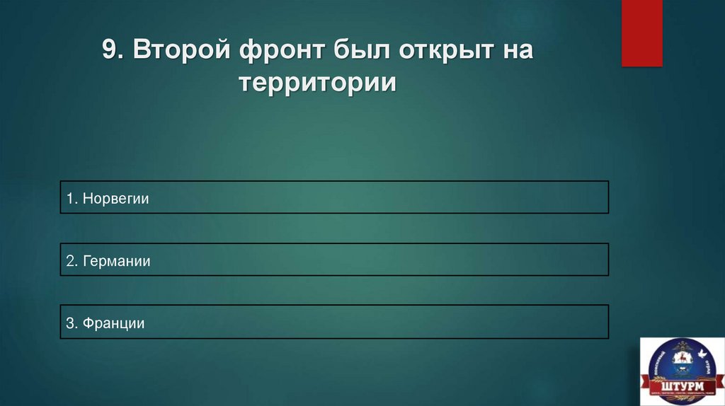 9. Второй фронт был открыт натерритории