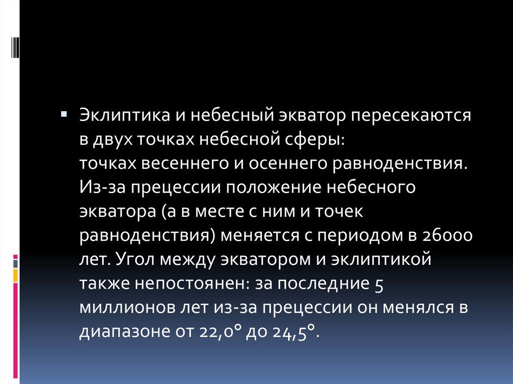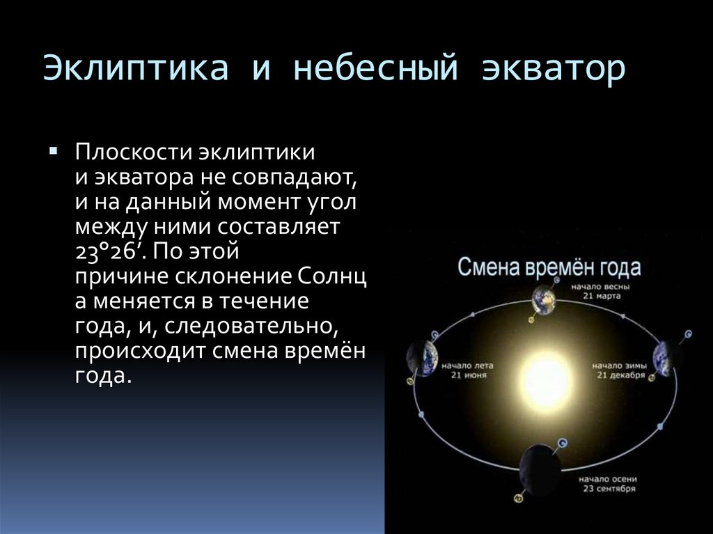 Эклиптика и небесный экватор пересекаютсяв двух точках небесной сферы: