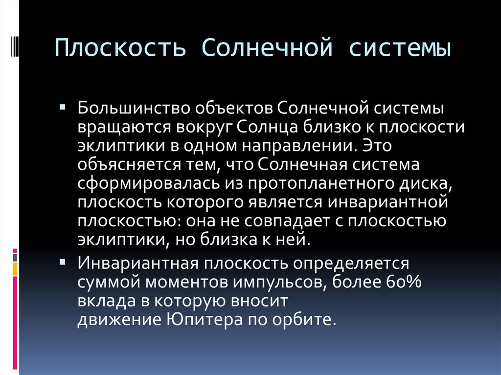 Плоскость Солнечной системыБольшинство объектов Солнечной системы