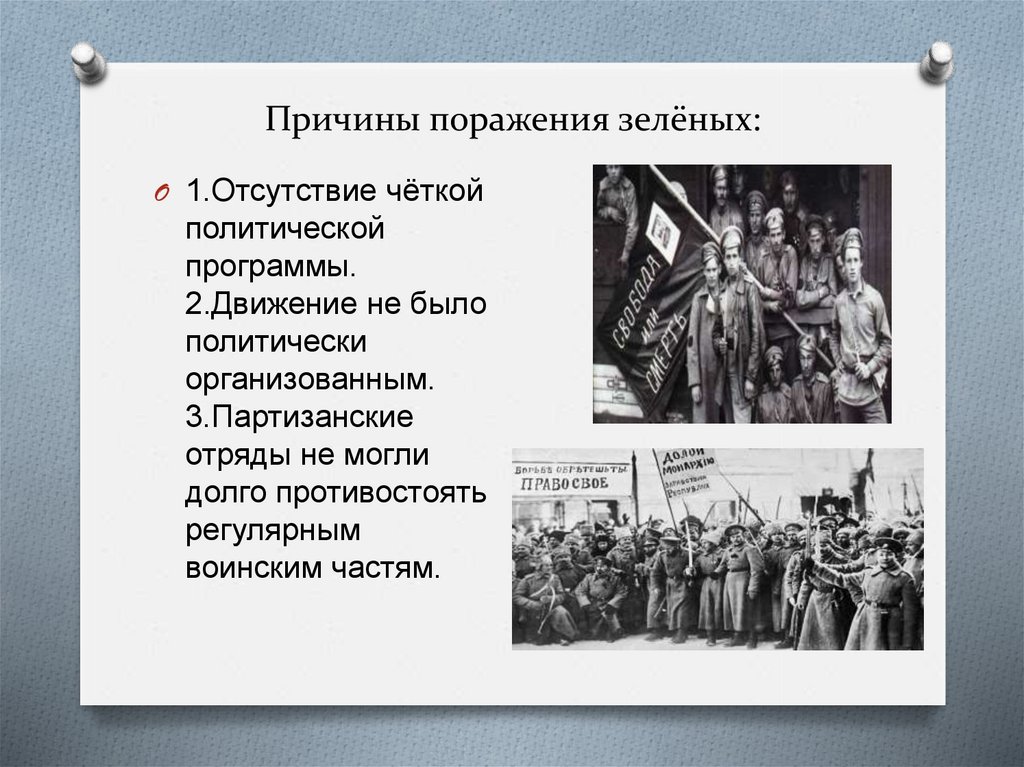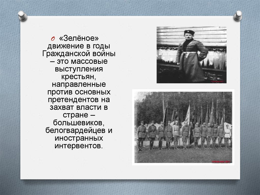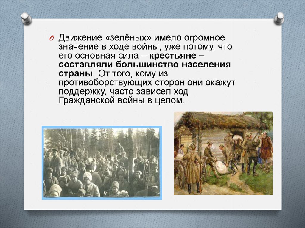 O Движение «зелёных» имело огромноезначение в ходе войны, уже потому, что