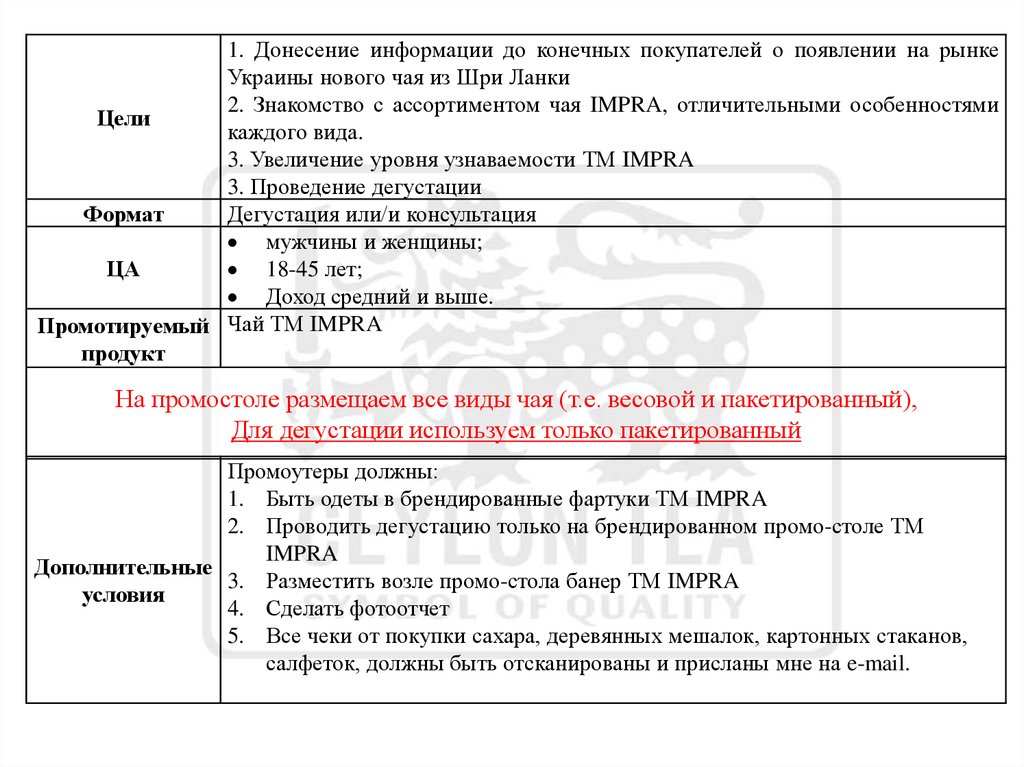 1. Донесение информации до конечных покупателей о появлении на рынкеУкраины нового чая из Шри Ланки