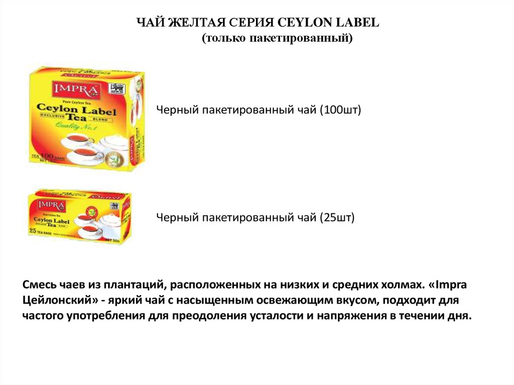 ЧАЙ ЖЕЛТАЯ СЕРИЯ CEYLON LABEL(только пакетированный)