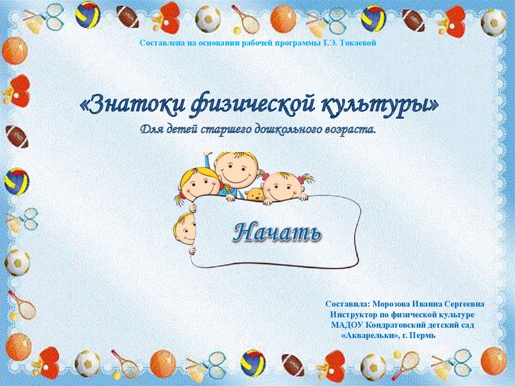 Составлена на основании рабочей программы Т.Э. Токаевой«Знатоки физической культуры»