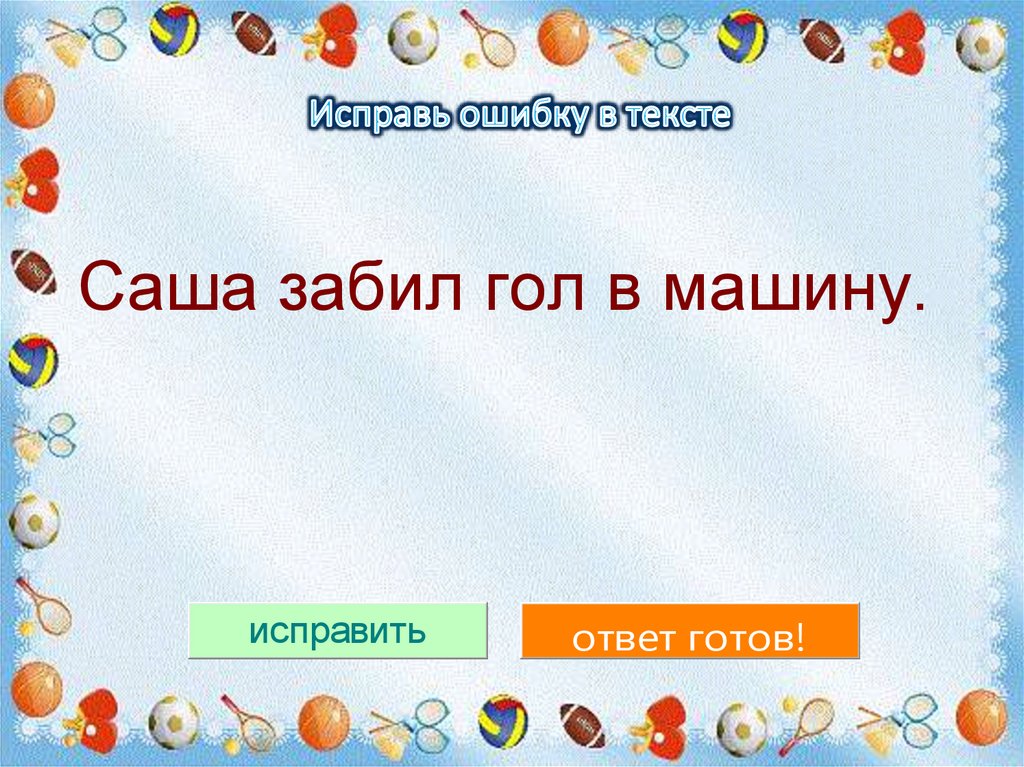Саша забил гол в машину.исправить