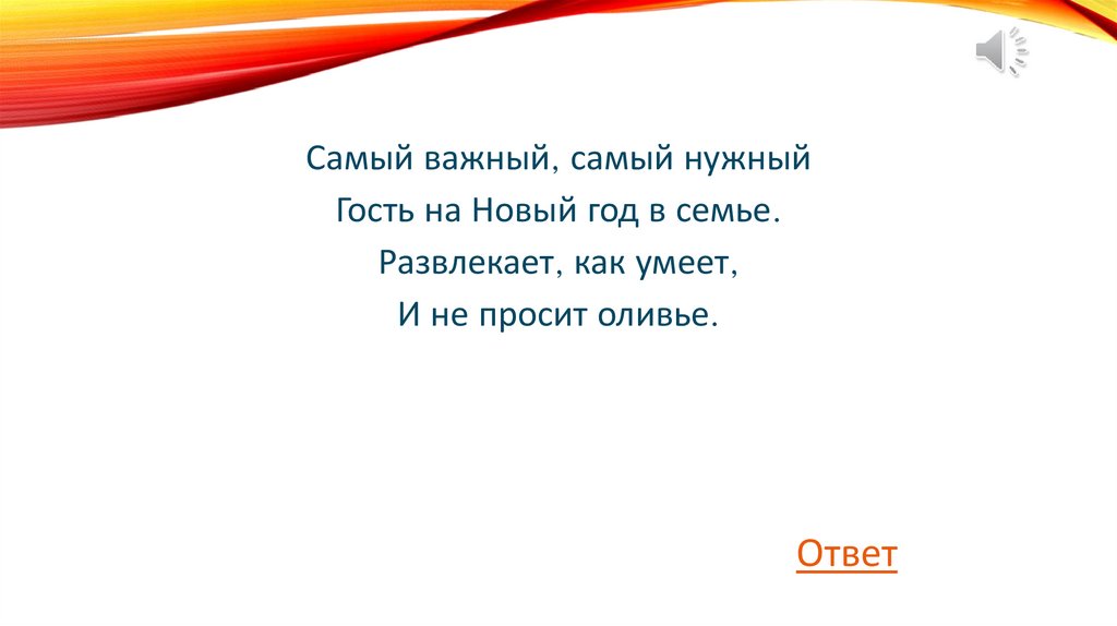 Самый важный, самый нужныйГость на Новый год в семье.
