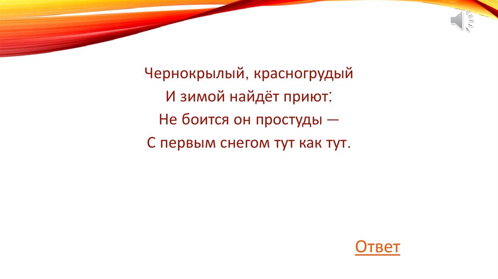 Чернокрылый, красногрудыйИ зимой найдёт приют: