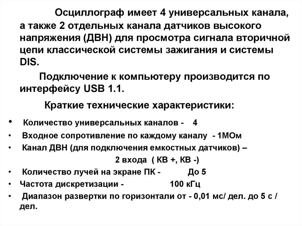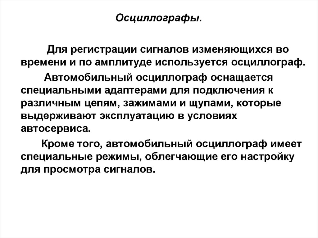 Осциллограф – прибор универсальный,возможности его применения в диагностике очень