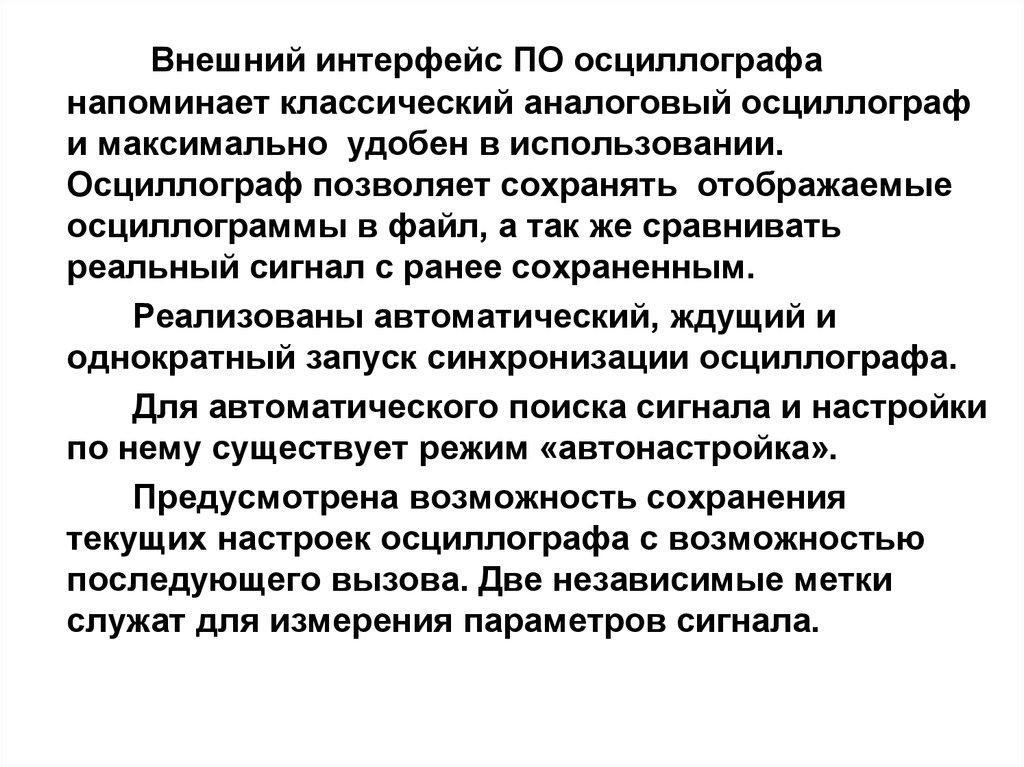 Внешний интерфейс ПО осциллографанапоминает классический аналоговый осциллограф