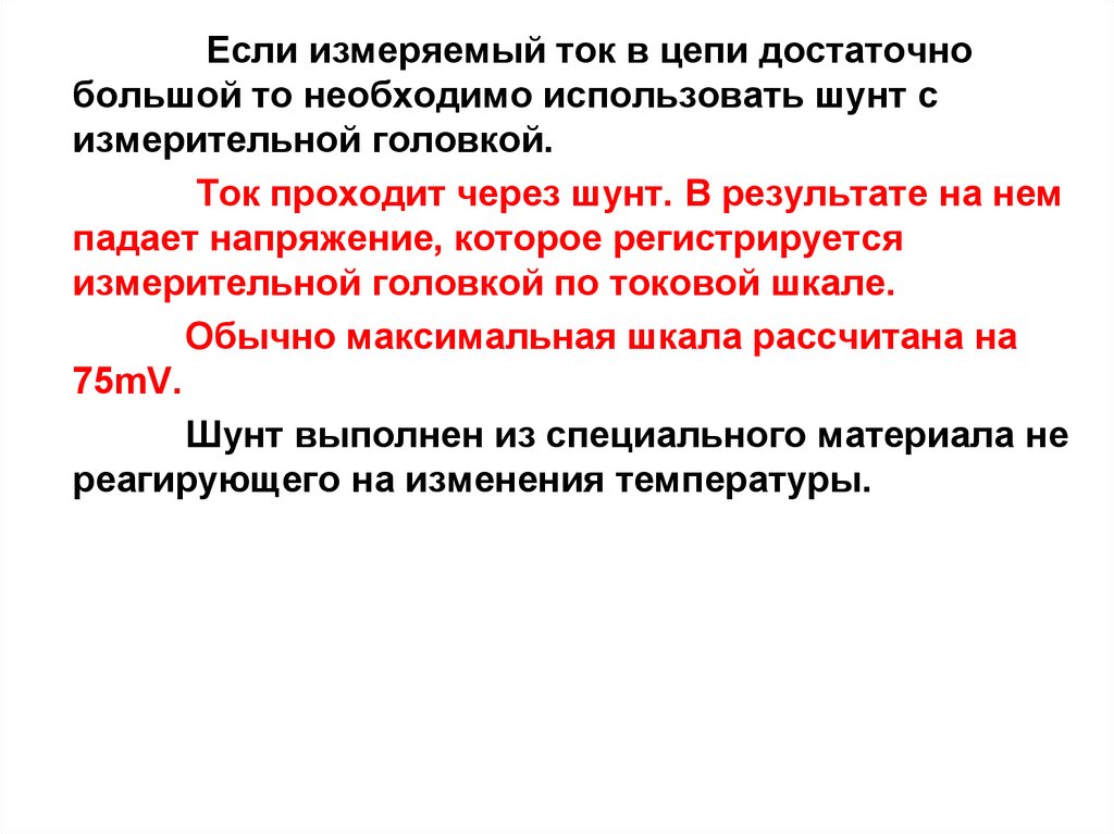 Если измеряемый ток в цепи достаточнобольшой то необходимо использовать шунт с