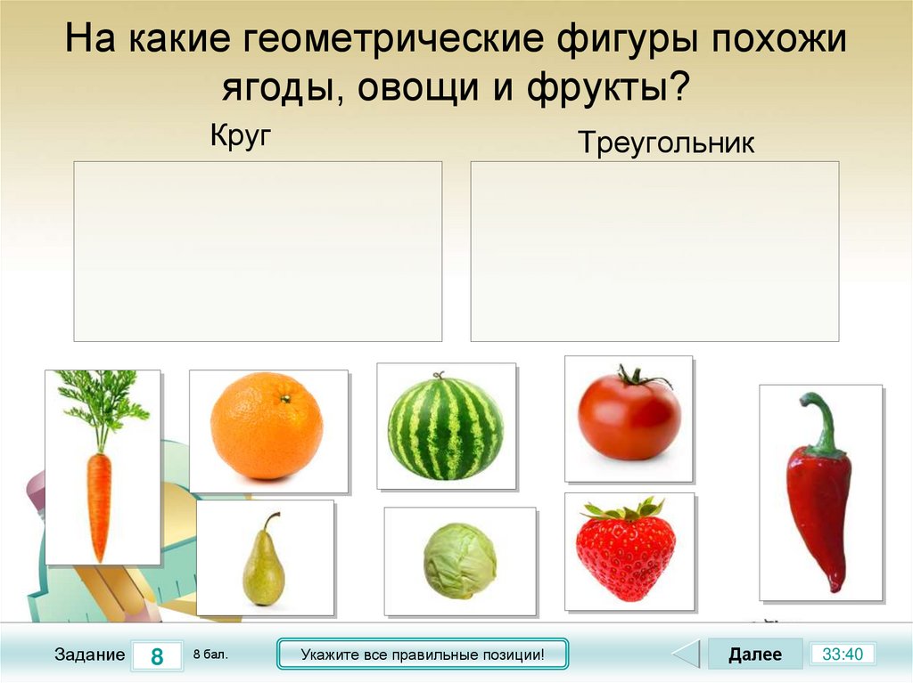 На какие геометрические фигуры похожиягоды, овощи и фрукты?