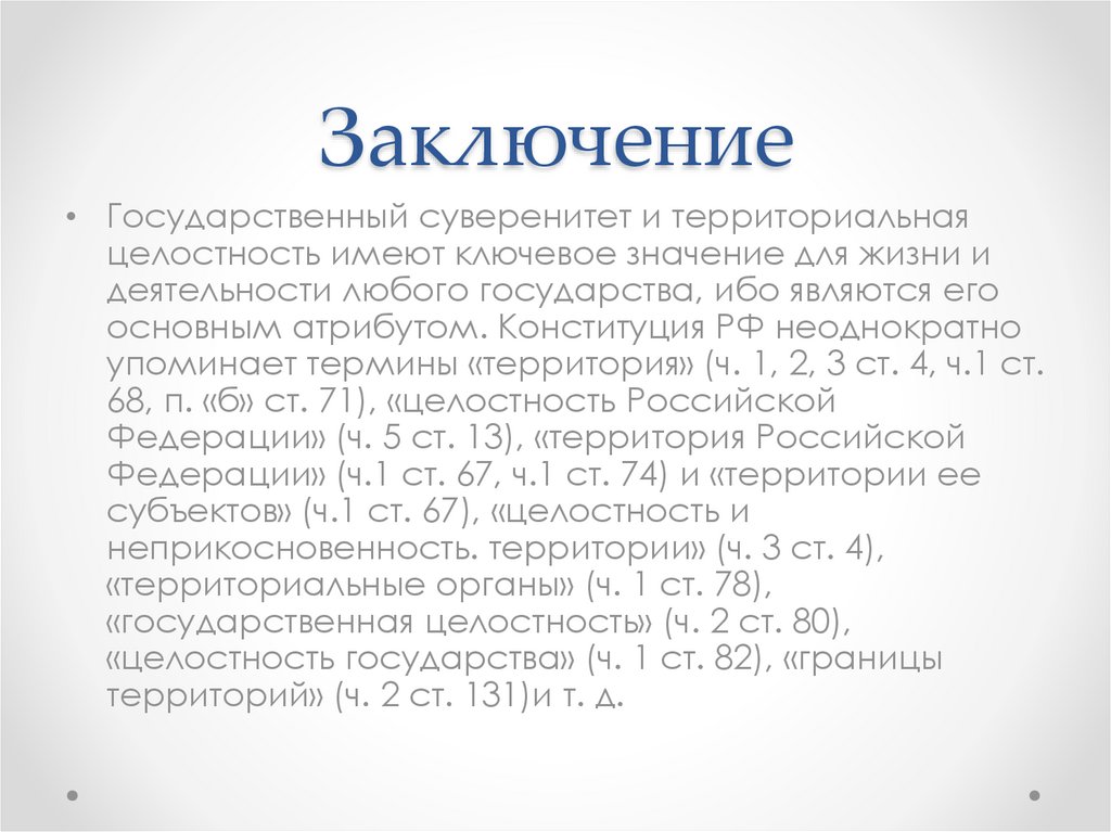 Заключение• Государственный суверенитет и территориальная