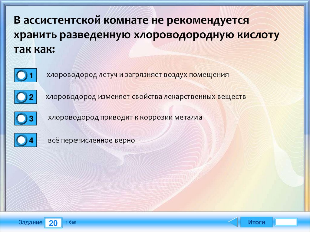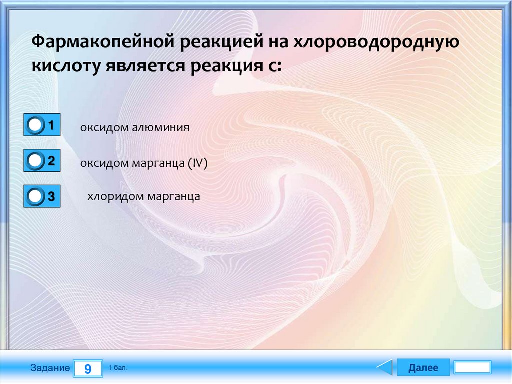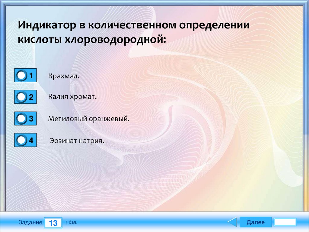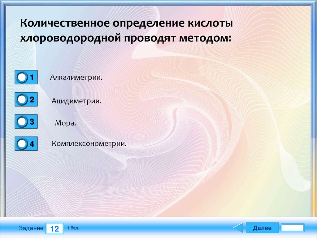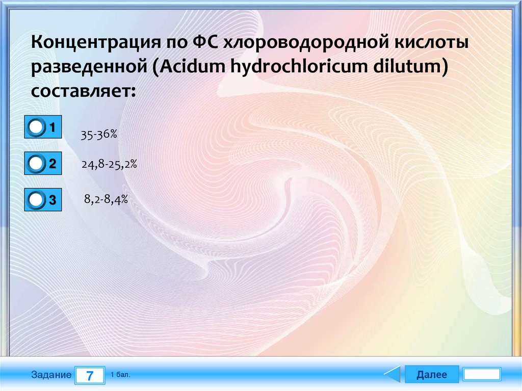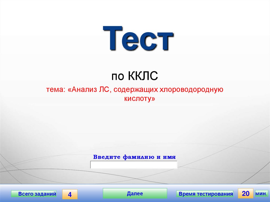 Тест по ККЛС: «Анализ ЛС, содержащих хлороводородную кислоту»