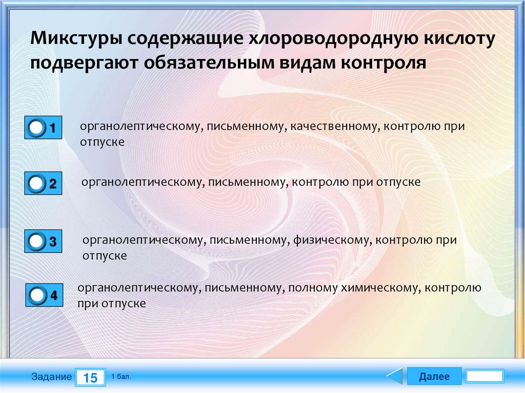 Микстуры содержащие хлороводородную кислотуподвергают обязательным видам контроля